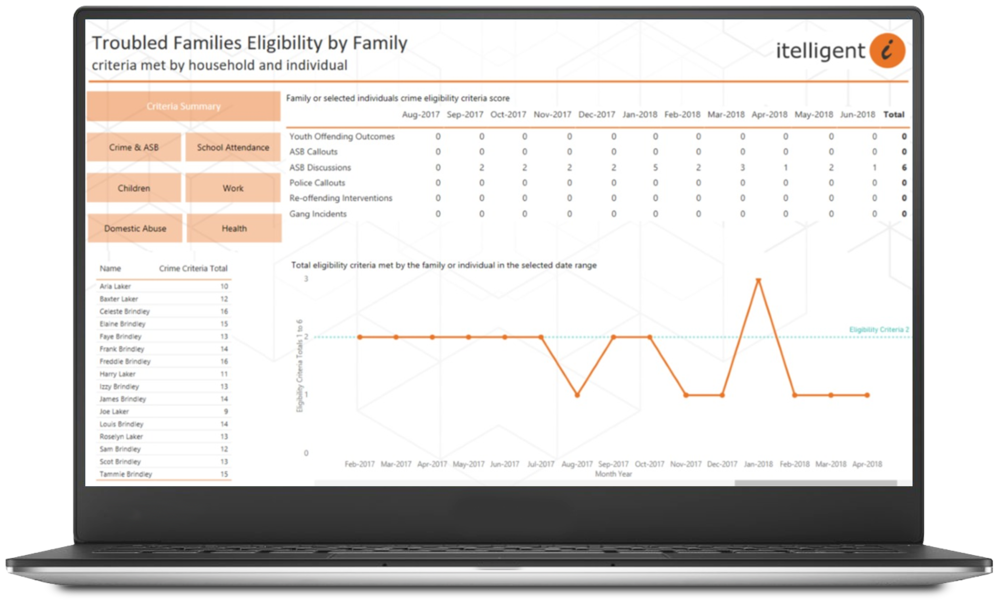 The itelligent-i Troubled Families solution brings together all relevant data sets required to automate the identification of families and measure the progress they are making in a governed and efficient way, freeing up the time of your analysts to interrogate this data in more detail.